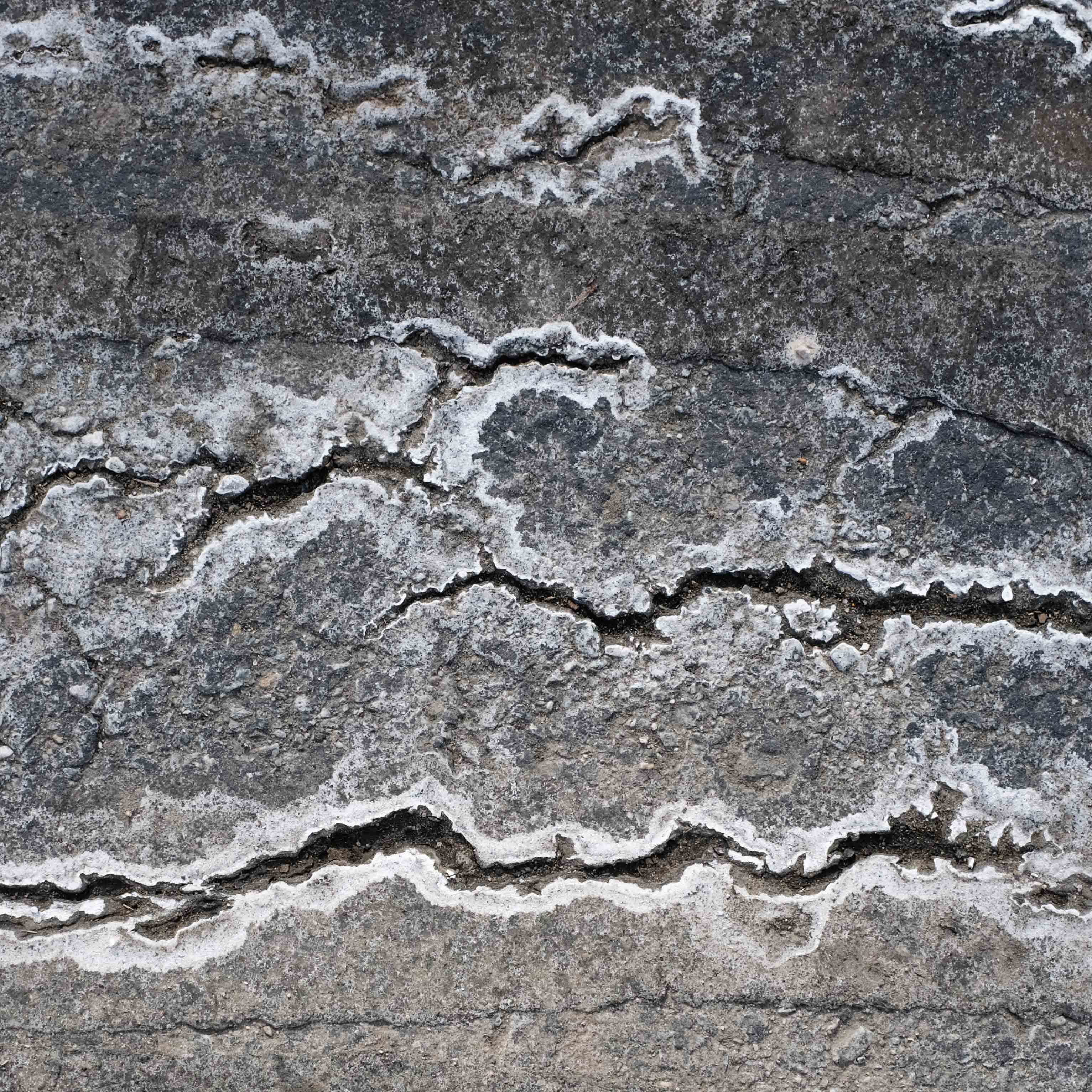Salt covers pavement.