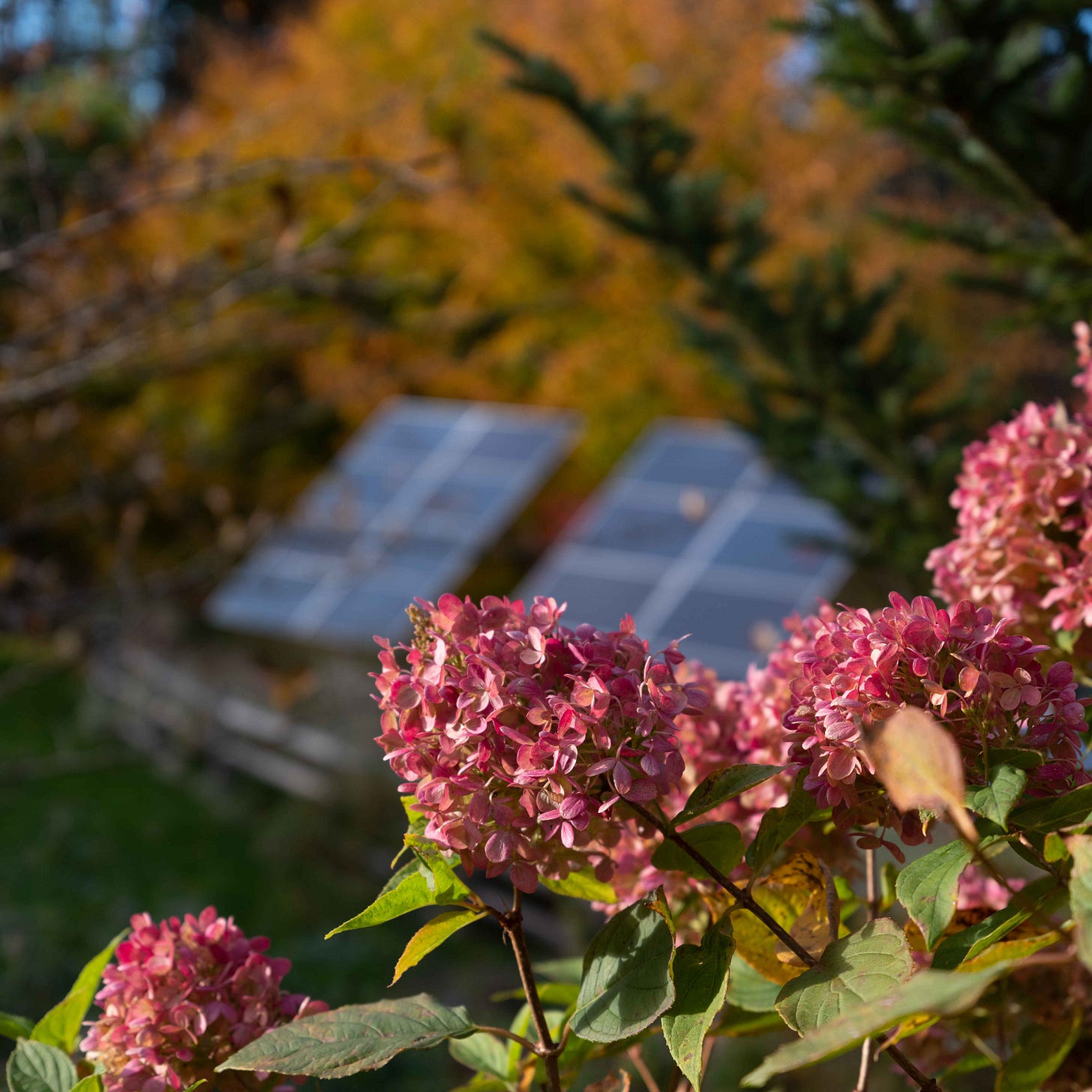 Also on this day in 2023 I witnessed one of our glorious pink Annabelle Hydrangeas silhouetted against our solar panels. I call this type of scene a “Solar Gardenscape.”3