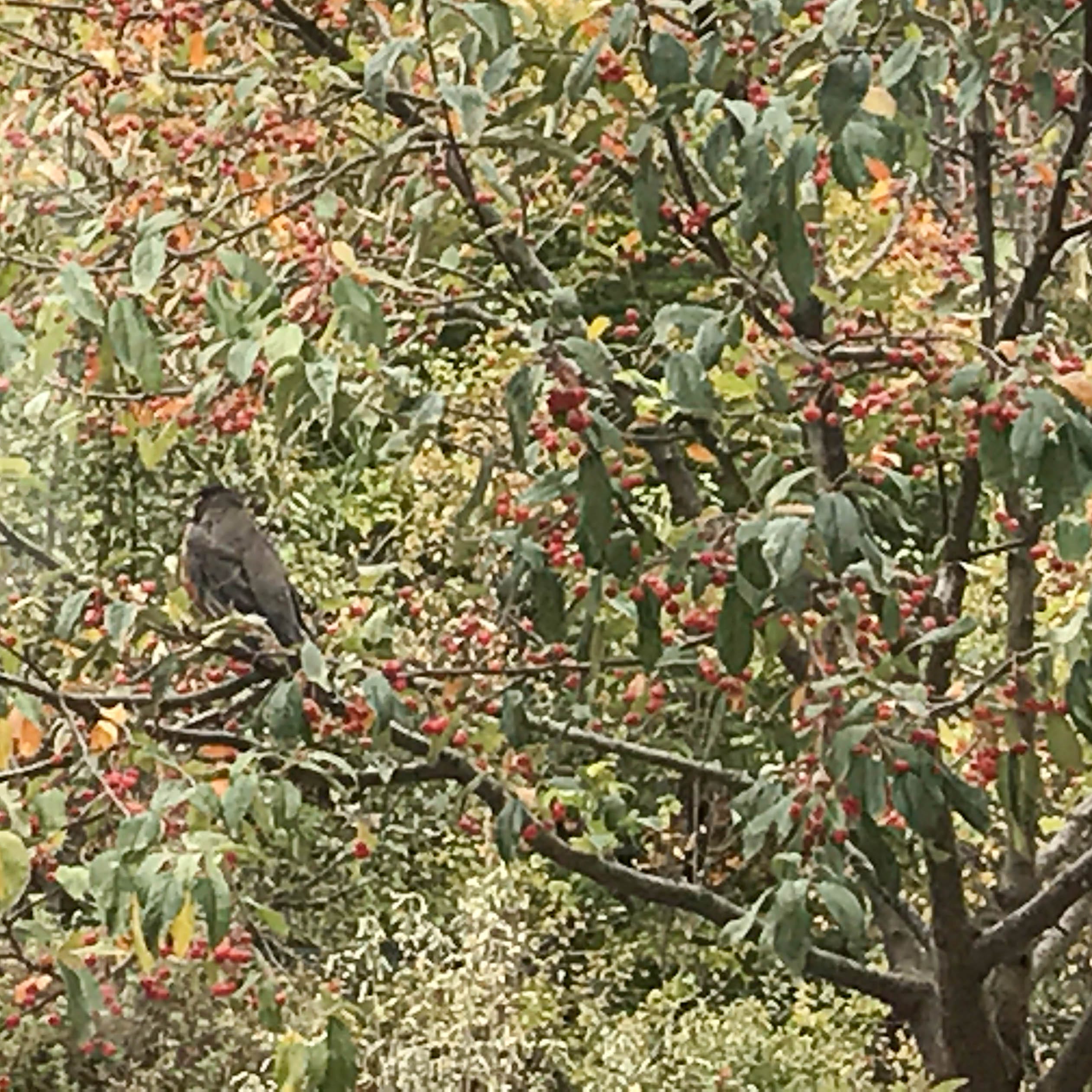 On October 23, 2018 this large bird sat on the crabapple just outside the kitchen. Could it be we’d created a safe habitat for creatures large and small?