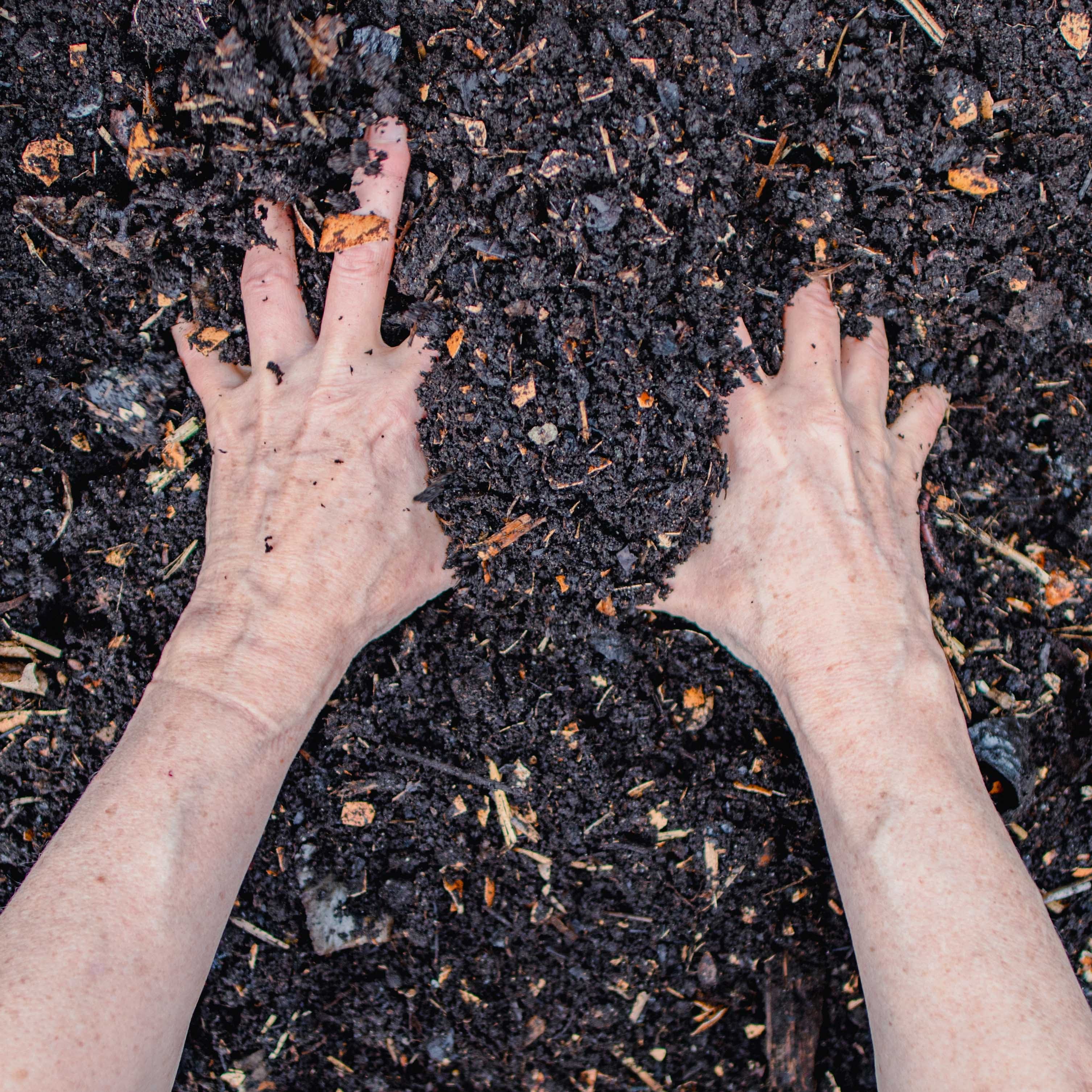 and hands in emergent soil.