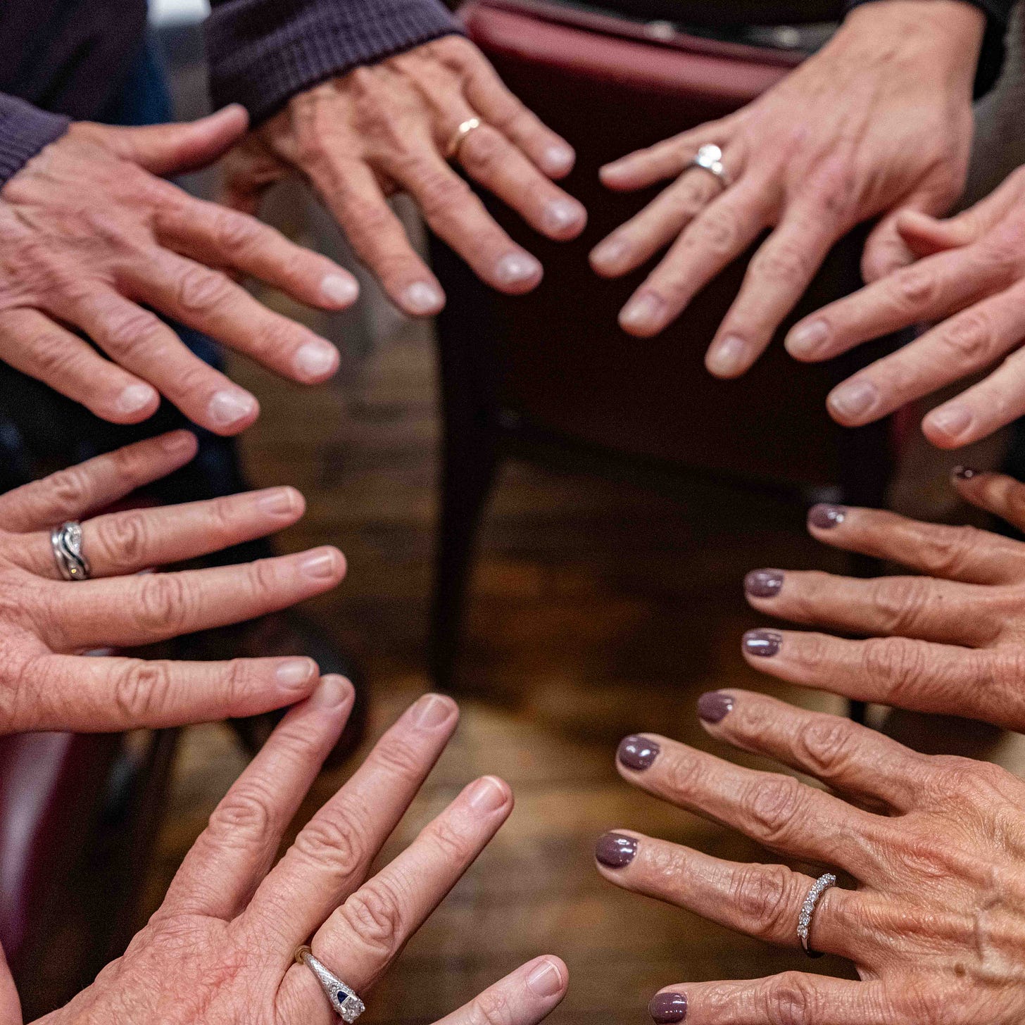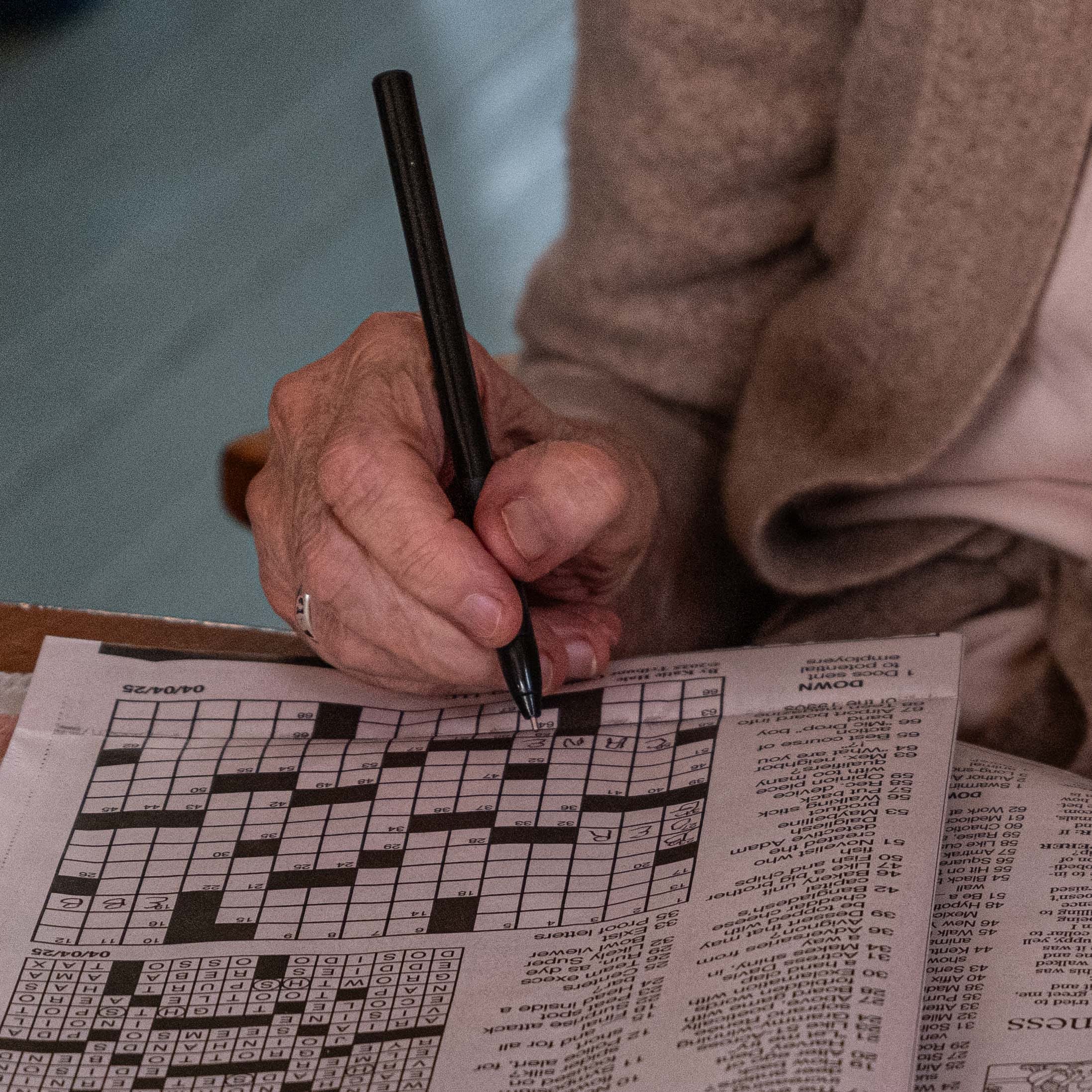 Sister’s fingers do needlepoint and play bridge;