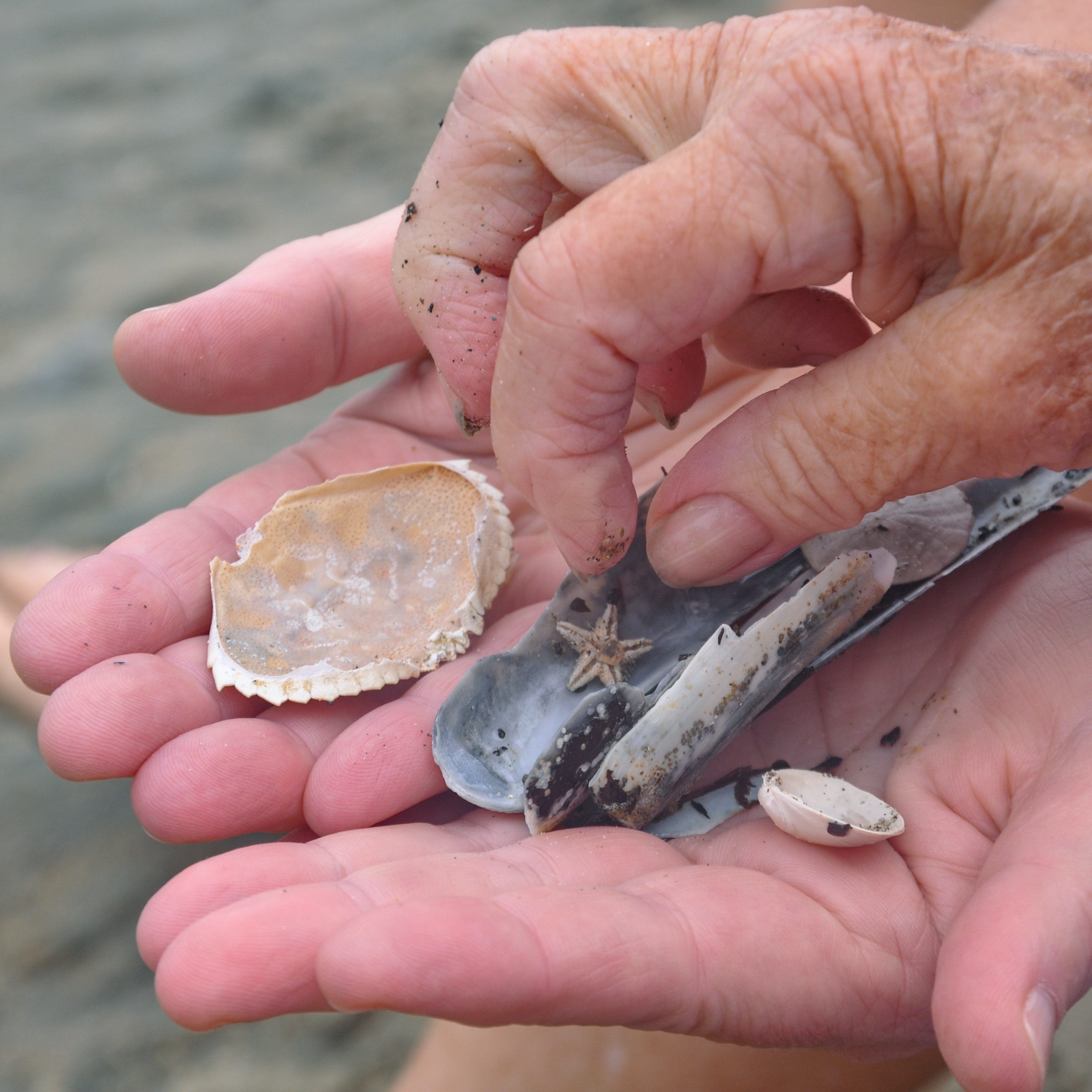 This is a bit of a ramble, but hands have always fascinated me, especially how they evolve over time. I love the juxtaposition of my mother-in-laws hand about to pick out the tiny starfish from the pile held by one of her sons or grandchildren. I can’t tell.